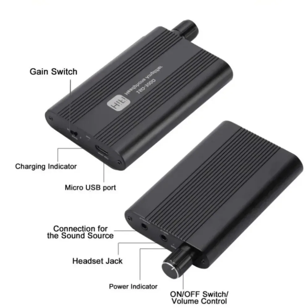 【Rechargeable Lithium Battery】--Adopt 600mAH rechargeable lithium battery, which can keep the headphone amplifier working for more than 8 hours. In addition, there is a volume control knob to adjust the volume